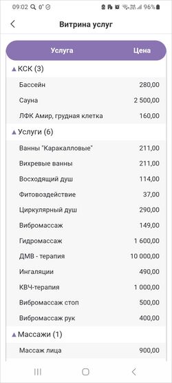 Витрина услуг позволяет гостям видеть с помощью мобильного приложения «Кинт:Гость», какие услуги существуют в санатории.