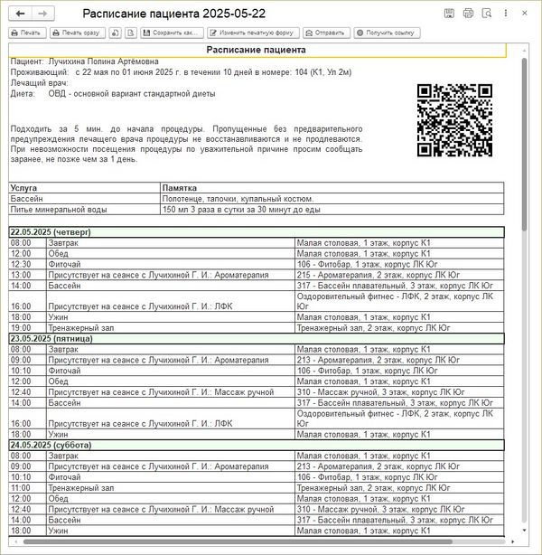 - Добавьте тех, с кем пациент может проходить процедуры совместно. Добавить можно только тех гостей, которые находятся в санатории на момент назначения.