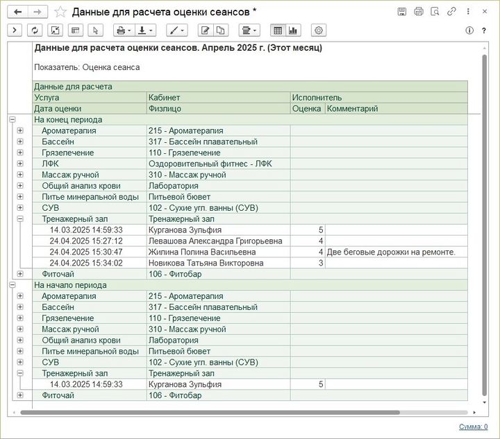 - Данные для расчета оценок сеансов — оценки по посещенным сеансам услуг