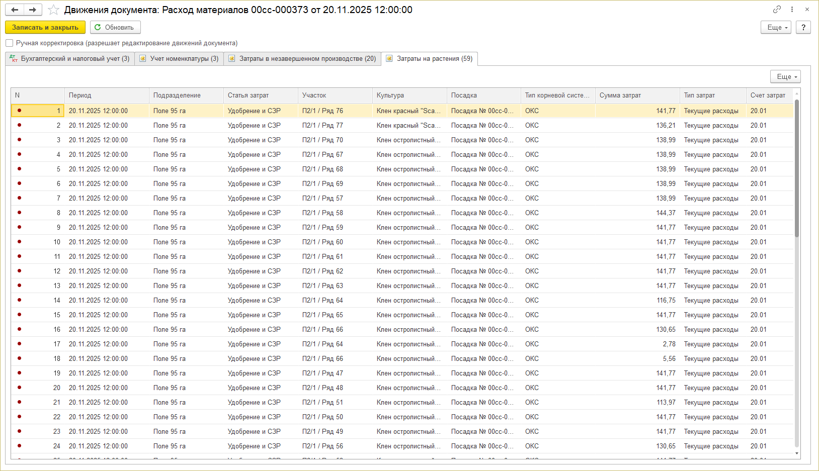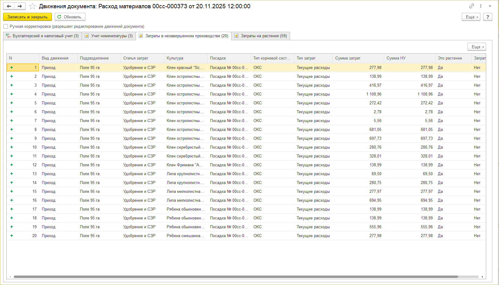 Настройки подститемы растениеводство - закладка Учет затрат.png