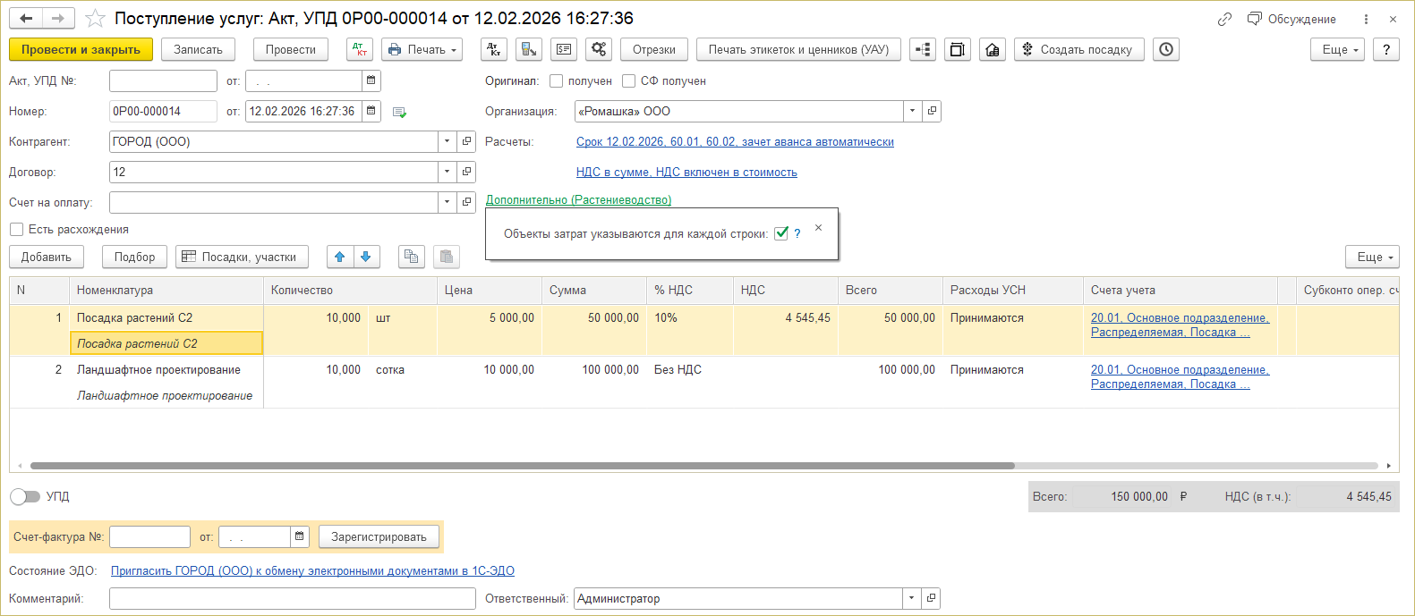 Файл:Поступлени е услуг - форма документа.png