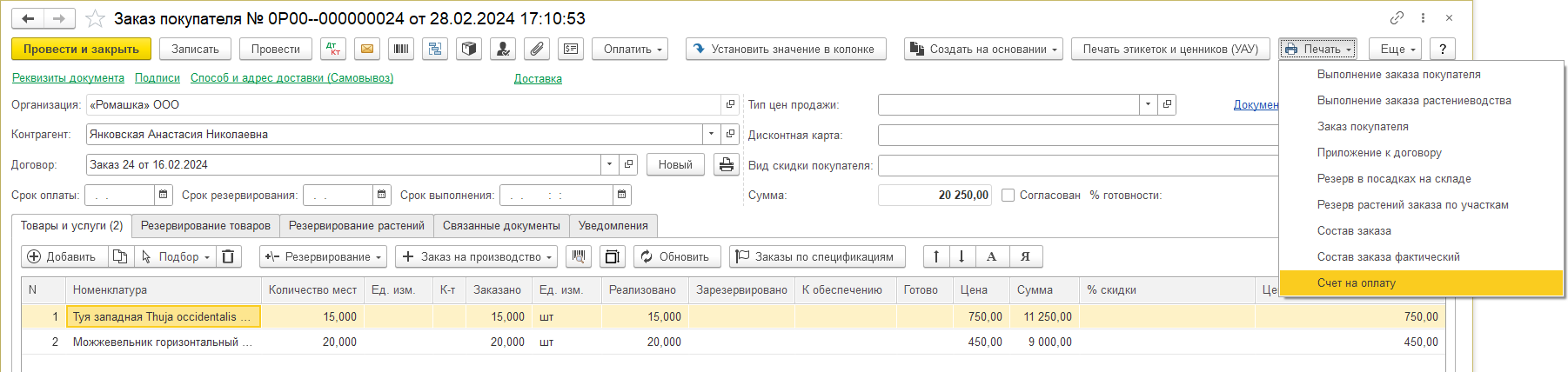 Файл:ИПВР Заказ покупателя Печать - Счет.png — различия между версиями