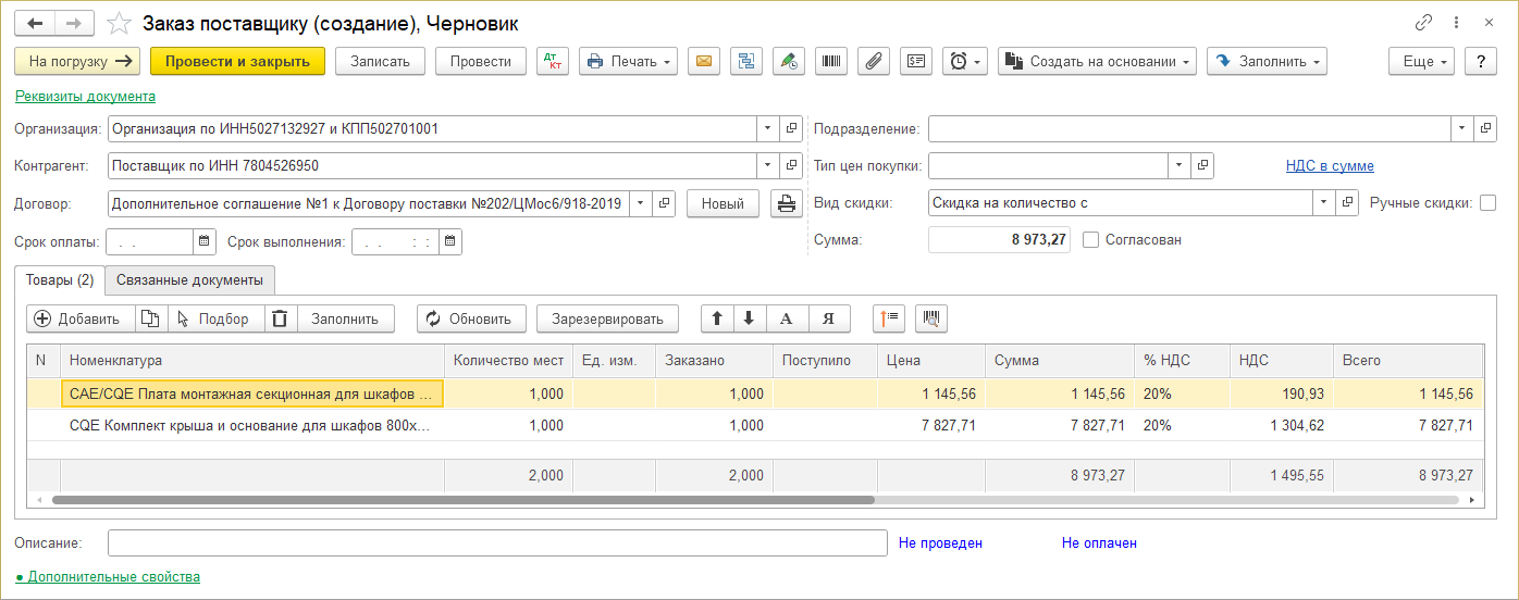 Файл:Заказ поставщику на основании счета от поставщика.png — различия между версиями