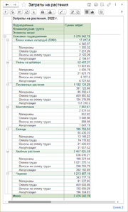 Отчет Затраты, выпуск, реализация, посажено, пересажено, списано.png