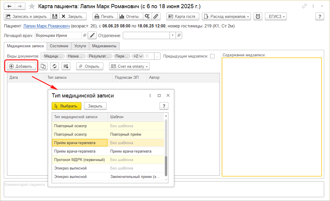 Версия от 09:39, 5 февраля 2026; Юлия Малкова (обсуждение | вклад) (Юлия Малкова загрузил новую версию Файл:Инстр Выбор типа медзаписи.png)