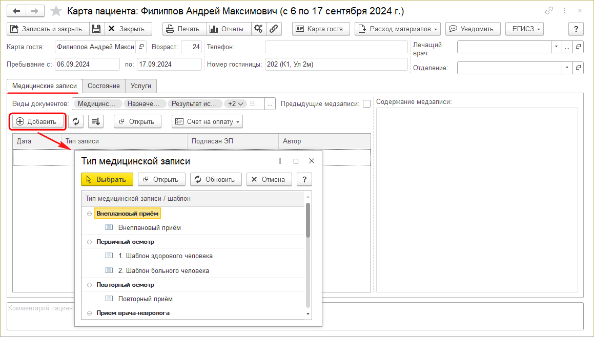 Версия от 15:40, 6 июня 2025; Юлия Малкова (обсуждение | вклад) (Юлия Малкова загрузил новую версию Файл:Инстр Выбор типа медзаписи.png)