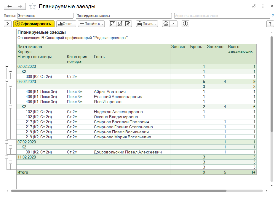 Версия от 10:45, 30 июня 2025; Юлия Малкова (обсуждение | вклад) (Юлия Малкова загрузил новую версию Файл:Отчет Планируемые заезды.png)