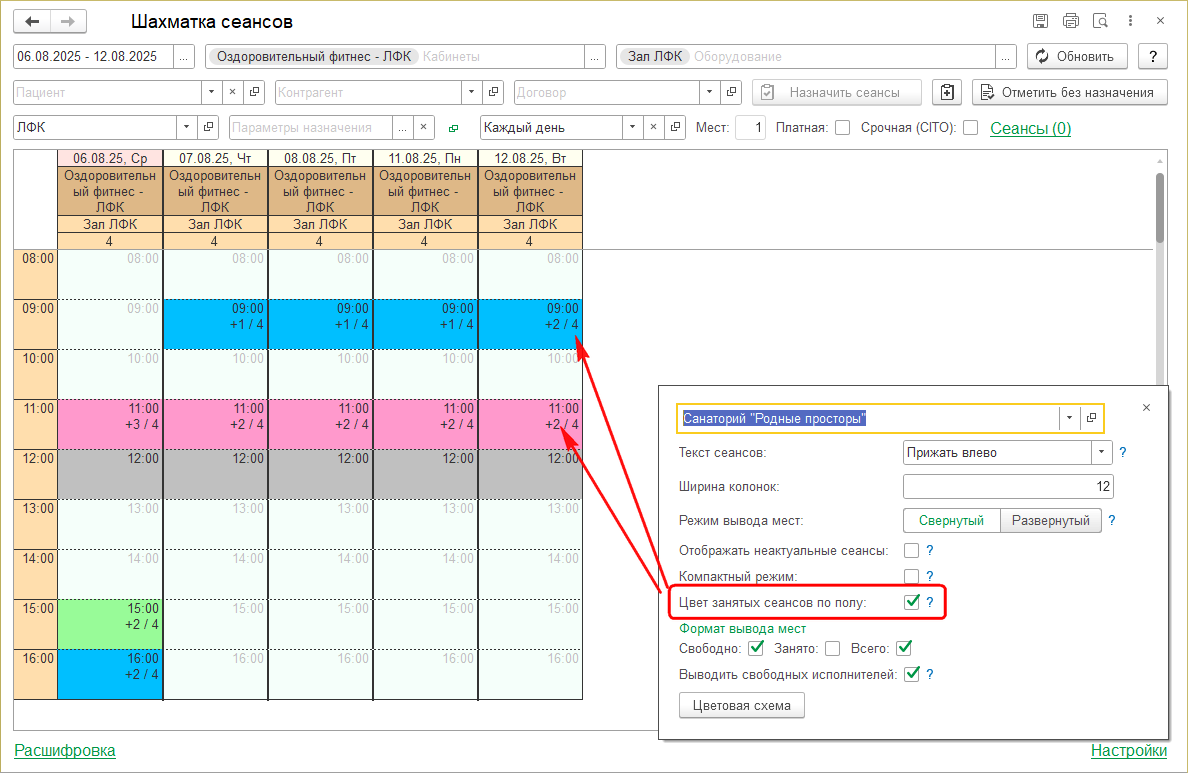 Версия от 11:38, 8 декабря 2025; Юлия Малкова (обсуждение | вклад) (Юлия Малкова загрузил новую версию Файл:Шахматка сеансов Цвет занятых сеансов по полу.png)