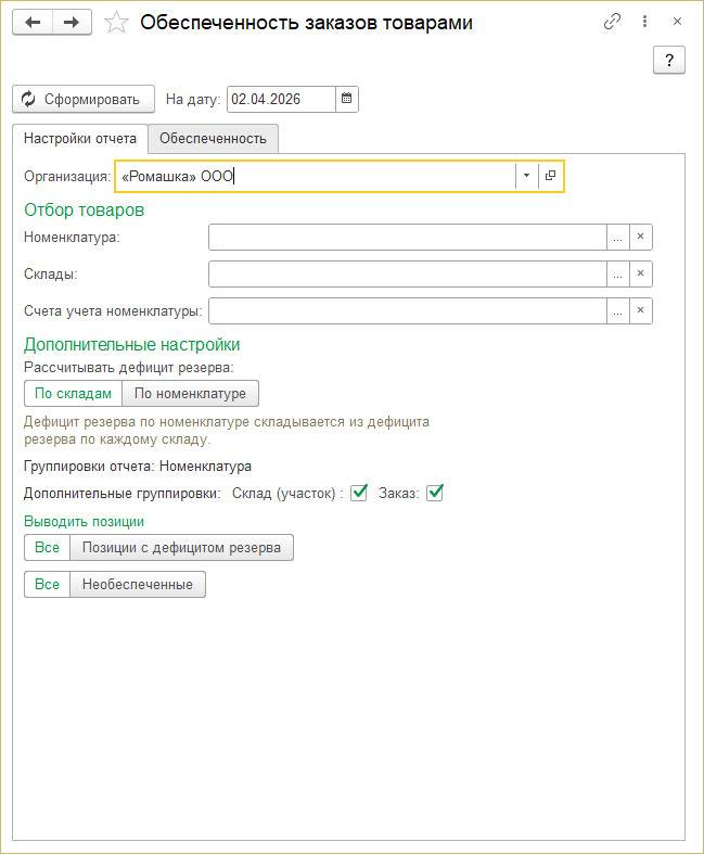 Настройки отчет Обеспеченность закзов товарами.png